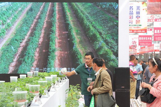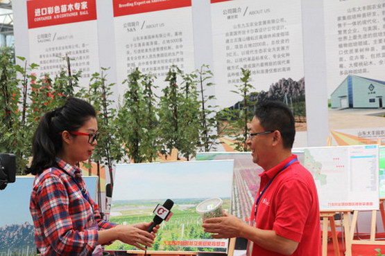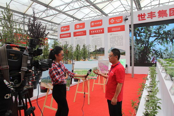 新闻媒体采访世丰集团,探讨苗木知识。世丰集团展出的展品成为展会中一道亮丽的风景。